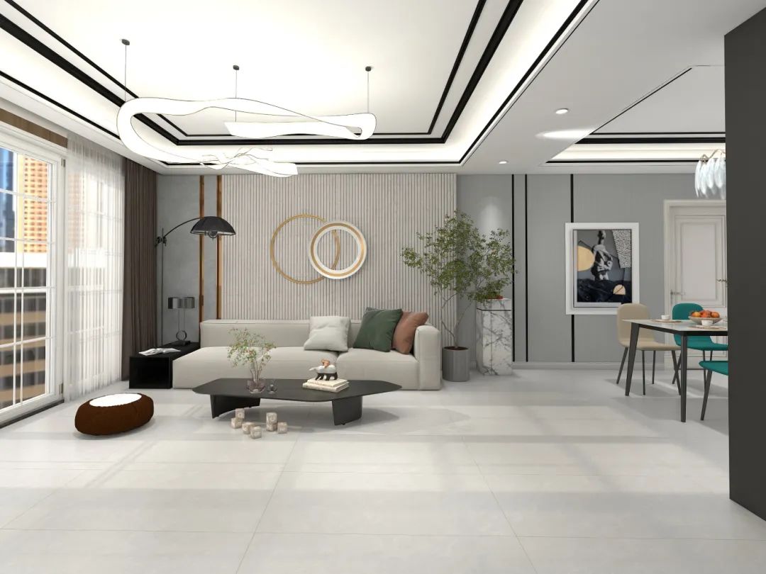 灰白色的高級感,舍棄復雜的顏色,將其綿滑細膩的觸感呈現(xiàn)在磚面,多一份溫潤柔和,營造出別致的家居空間。